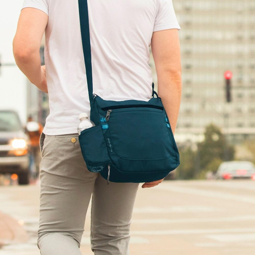 《TRAVELON》Active三層防盜斜背包(藍) | 側背包 斜背包 背帶包 防割防搶