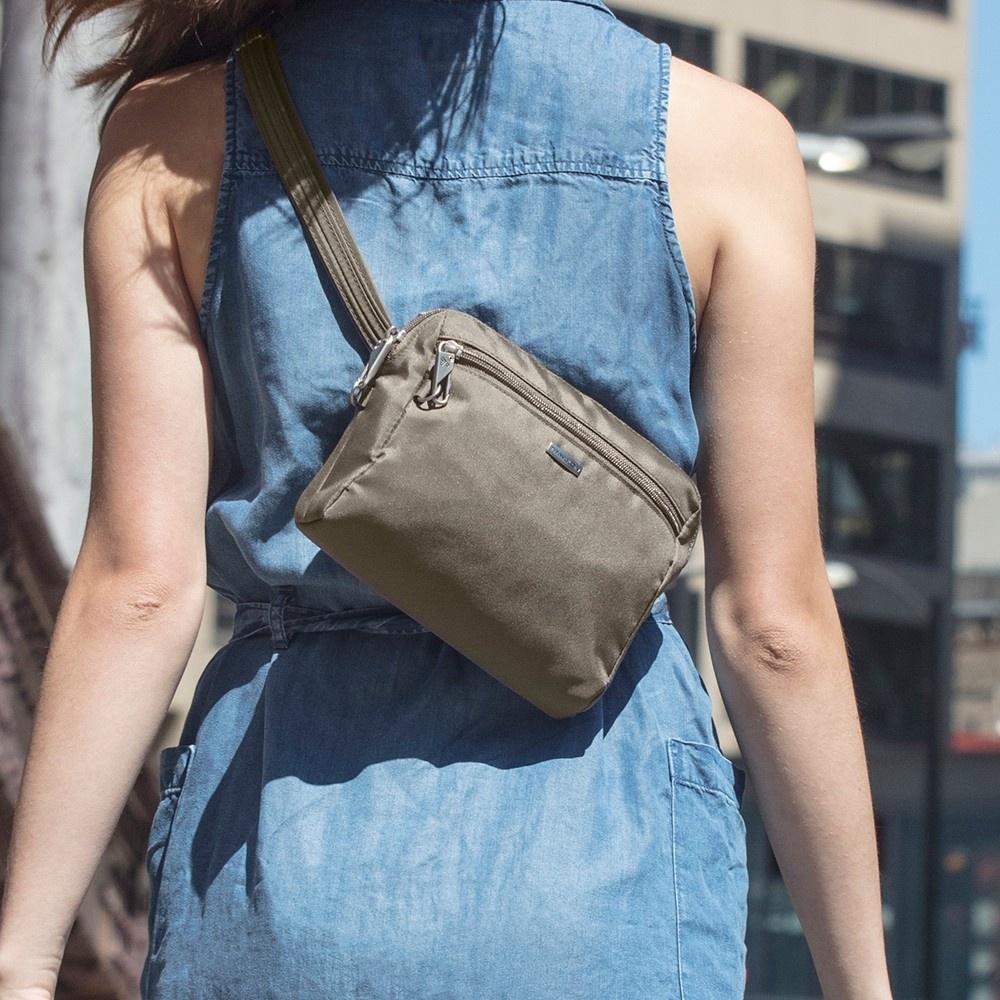 《TRAVELON》Classic三層防盜腰包斜背包(灰) | 側背包 斜背包 背帶包 防割防搶