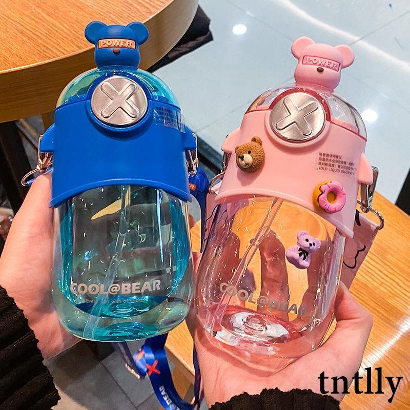 ☕下殺價 新款高顏值水壺 高質感暴力熊卡通胖胖杯 便攜tritan水壺 吸管揹帶水壺 隨行杯