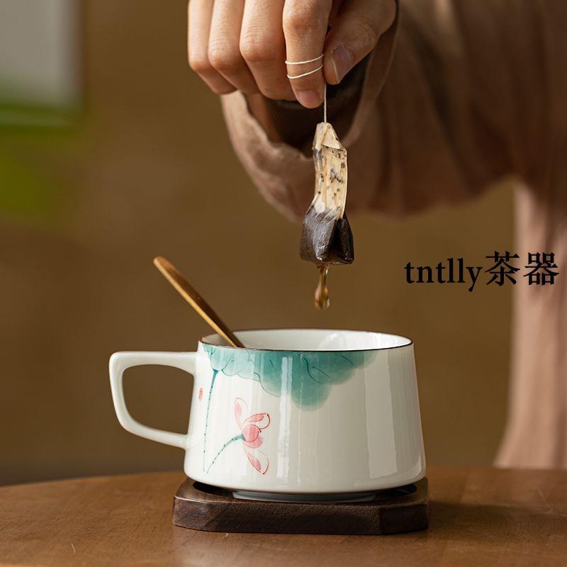 【現貨免運】手繪荷花咖啡杯陶瓷釉下彩馬克杯家用辦公杯中式水杯女禮盒裝送禮 德化茶具
