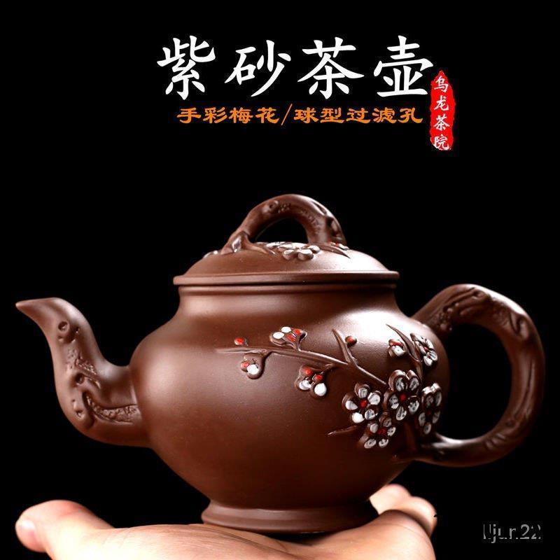 ☕茶壺 紫砂壺茶壺宜興朱泥紫砂壺彩繪梅梅花壺過濾壺仿古西施石瓢報春壺