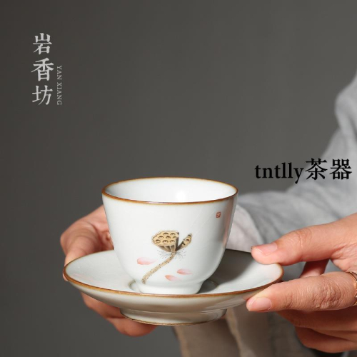 【現貨免運】汝窯開片手繪花開花落主人杯陶瓷茶杯功夫茶具品茗杯單杯 德化茶具