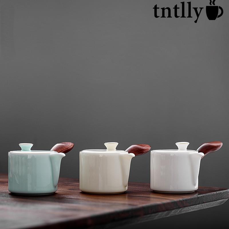 ☕羊脂玉茶壺 陶瓷三才蓋碗 功夫茶具 側把茶壺 汝窯茶壺 簡約家用辦公室茶壺 茶水分離壺 壺