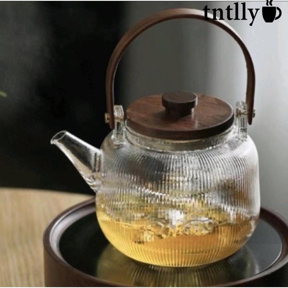 ☕蒸煮兩用可加熱煮茶器 木把提樑泡茶壺 家用高硼硅玻璃壺 茶壺 提樑玻璃壺