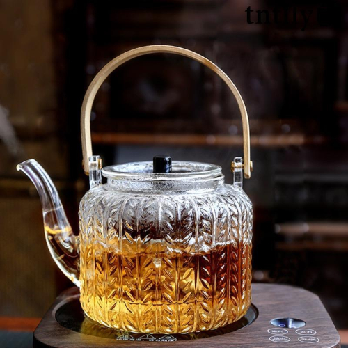 ☕玻璃蒸汽煮茶壺 玻璃泡茶壺 竹製提樑玻璃壺 茶水分離壺 可直燒壺 耐熱玻璃壺 家用大容量壺 壺 家用養