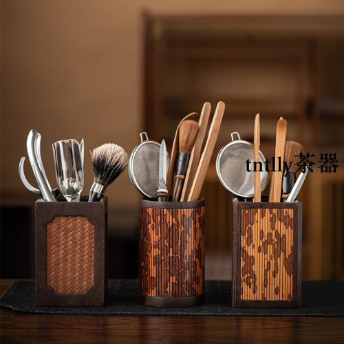 【現貨免運】茶道六君子湘妃竹茶具配件茶勺茶夾 中式茶道筒收納 配件套裝 德化茶具