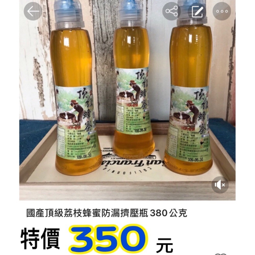 容量:380公克(荔枝蜂蜜擠壓瓶1瓶)