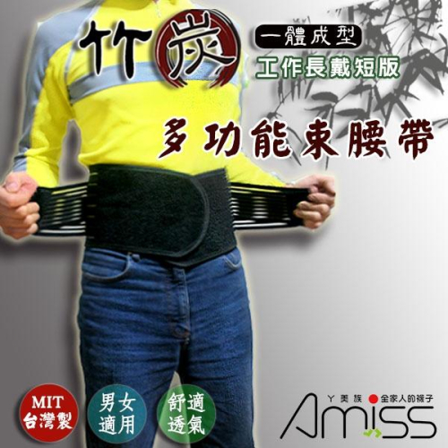 【Amiss】竹炭一體成型-多功能束腰-工作長戴短版 護腰 (A603-1)