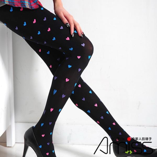 【Amiss】狠腳色‧經典印花褲襪-彩色桃心 愛心褲襪 桃心褲襪(A132-23)
