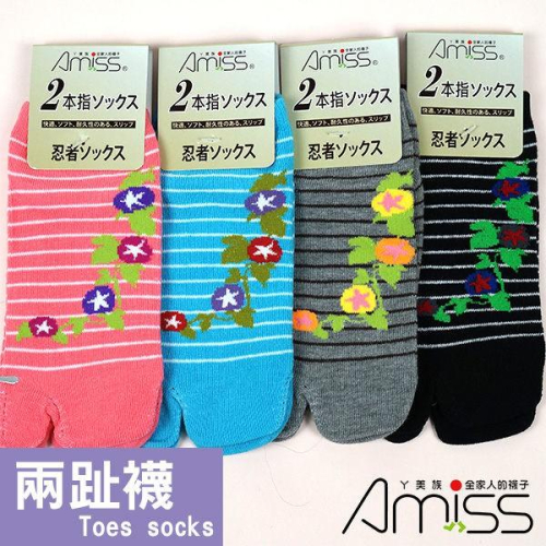 Amiss日系造型兩趾忍者襪【2雙組】-條紋牽牛花(C161-2)