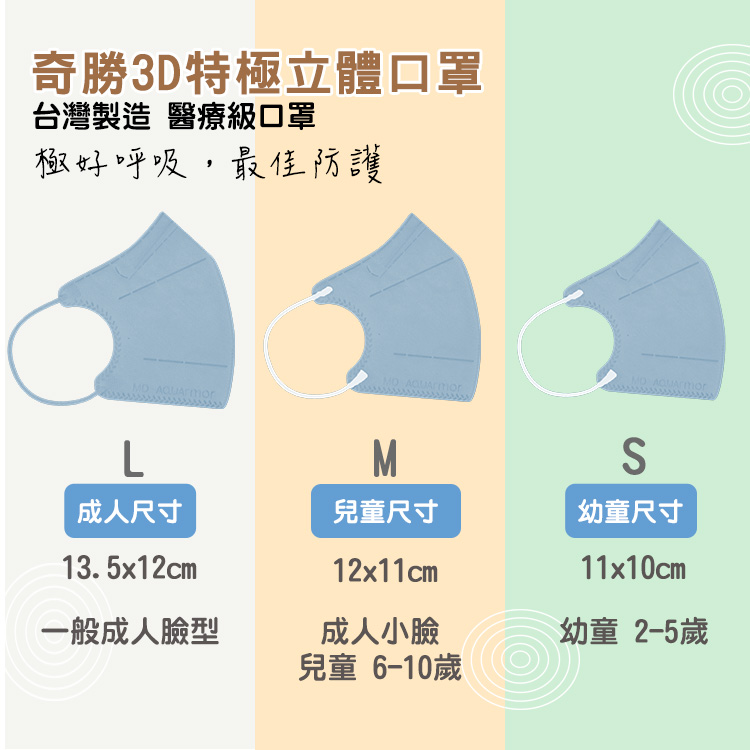 ●尺寸:(L)成人13.5x12cm、(M)兒童(成人小臉)12x11cm、(S)幼童11x10cm