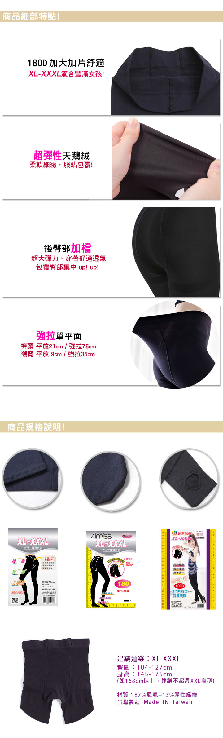 【7-ELEVEN門市團購】XL-3XL臀部加片型‧厚天鵝絨大尺碼加大保暖褲襪【Amiss】