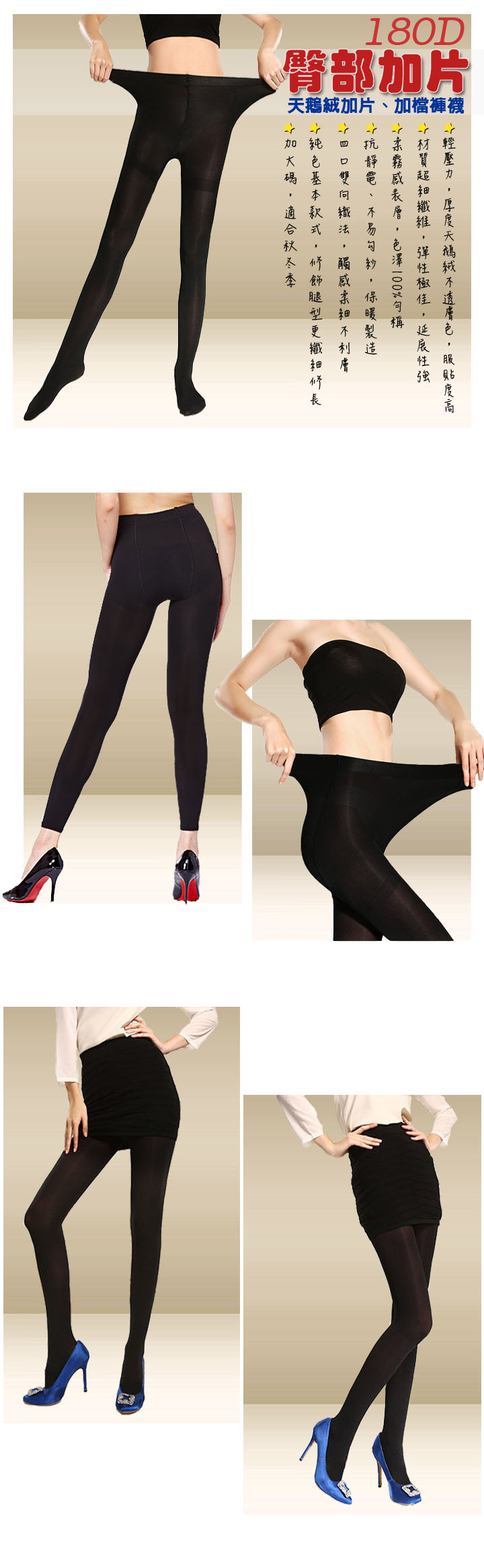 *厚天鵝絨內裏無刷毛喔,厚度約180D 不透膚透度,如要刷毛可參考刷毛褲襪