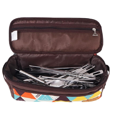 戶外野營炊具收納包 材質: 牛津布 尺寸: 33x13x12.5cm 重量: 約235g 顏色: 民族風