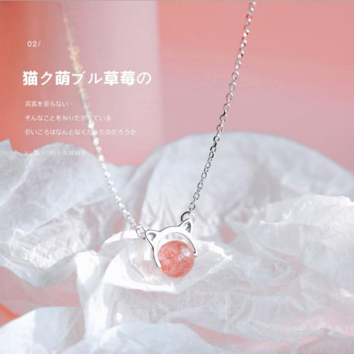 S森系草莓晶招桃花 草莓晶貓咪手鍊 貓咪項鍊 草莓晶貓咪手鍊 貓咪草莓晶耳環 草莓晶耳環