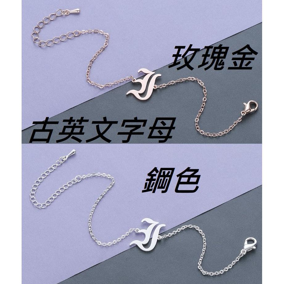 26英文字母白鋼玫瑰金手鍊 復古英文字母手鍊 26字母手鍊 玫瑰金古英文字母手鍊 生日禮物26英文字母手鍊
