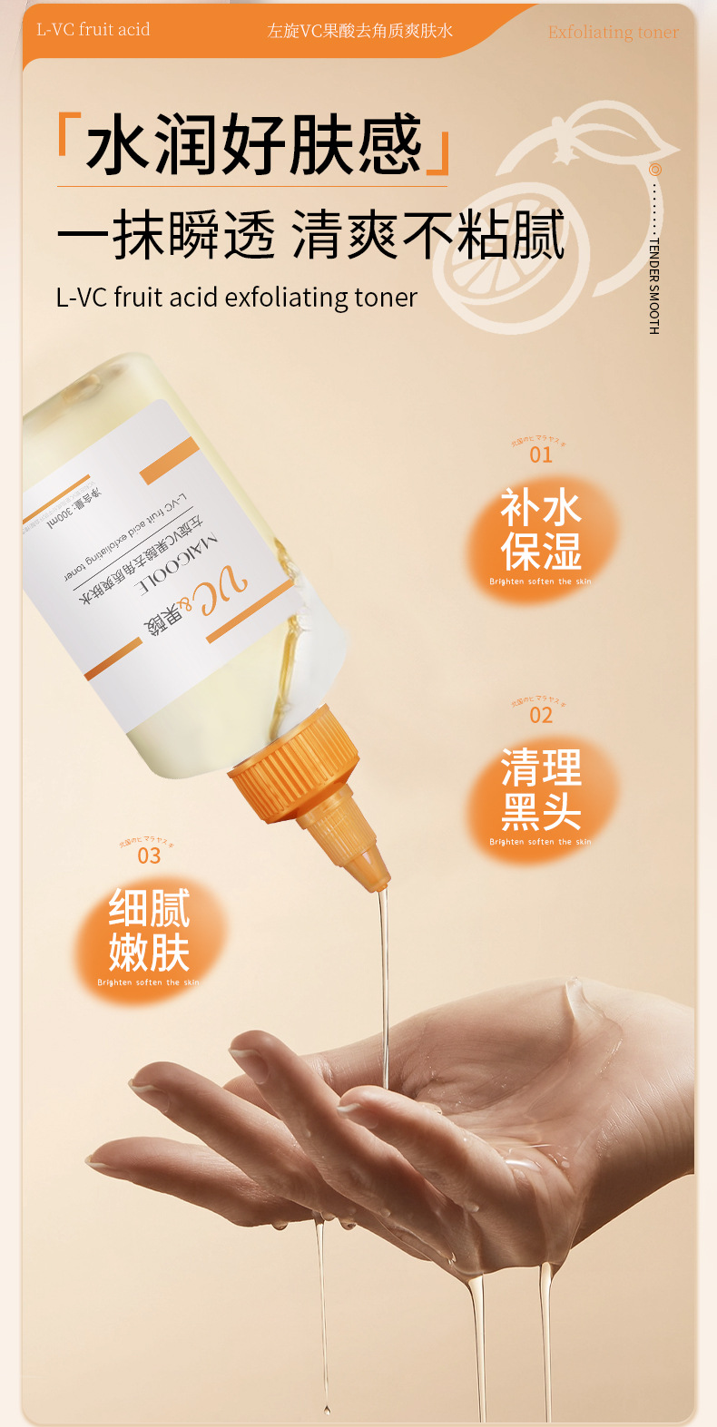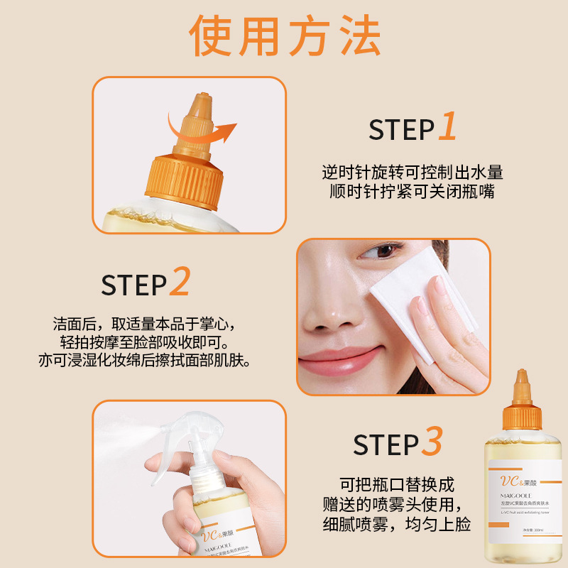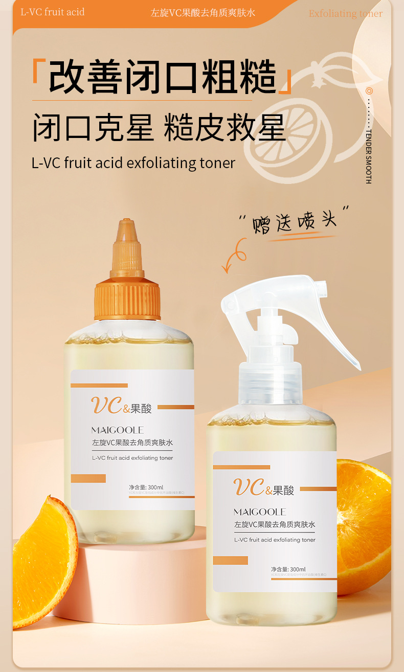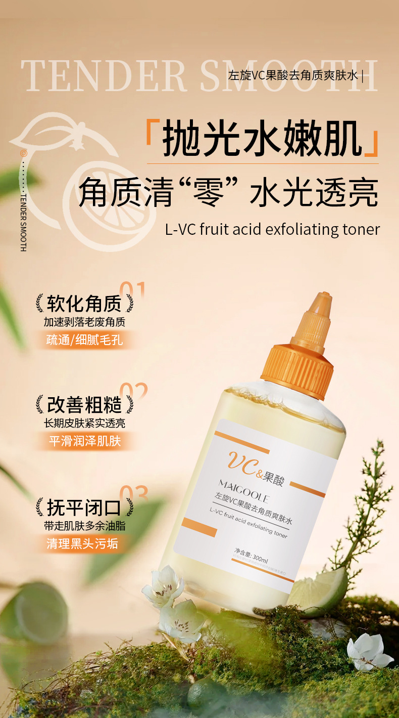 左旋VC 甘醇酸 乙醇酸化妝水 果酸爽膚水 果酸化妝水 左旋VC果酸 果酸去角質爽膚水 果酸精華水