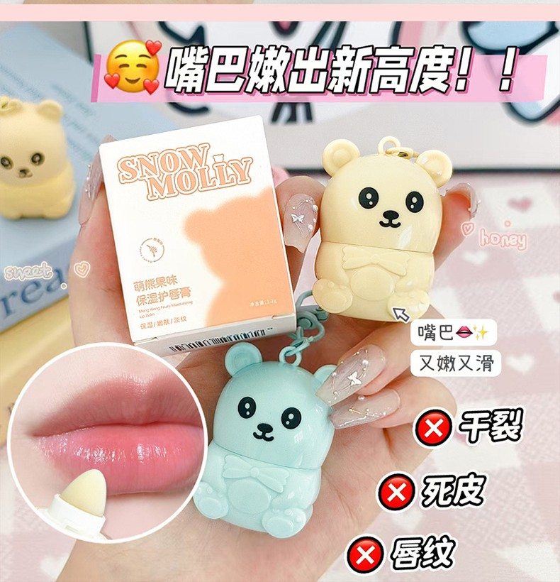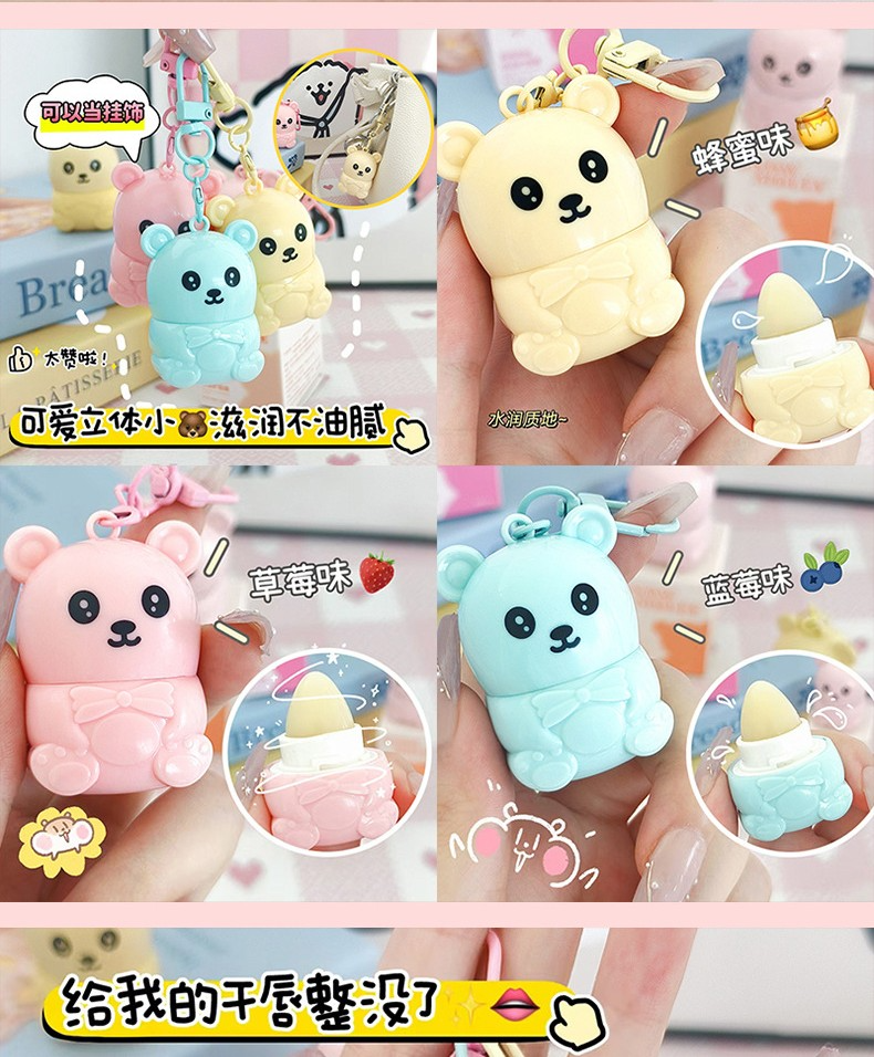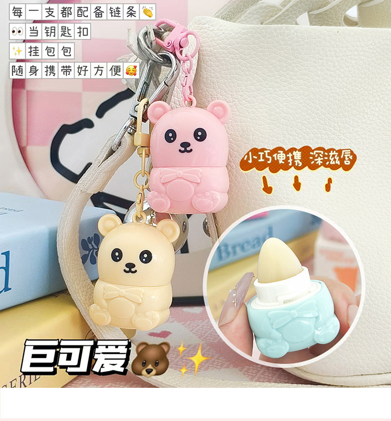小熊潤脣膏 小熊護唇膏 鑰匙扣唇膏 護唇膏 鑰匙圈唇膏 潤唇膏 潤色護唇膏 萌寵唇膏 打底護唇膏