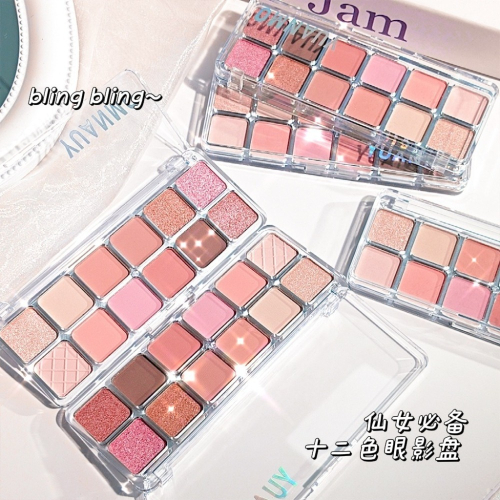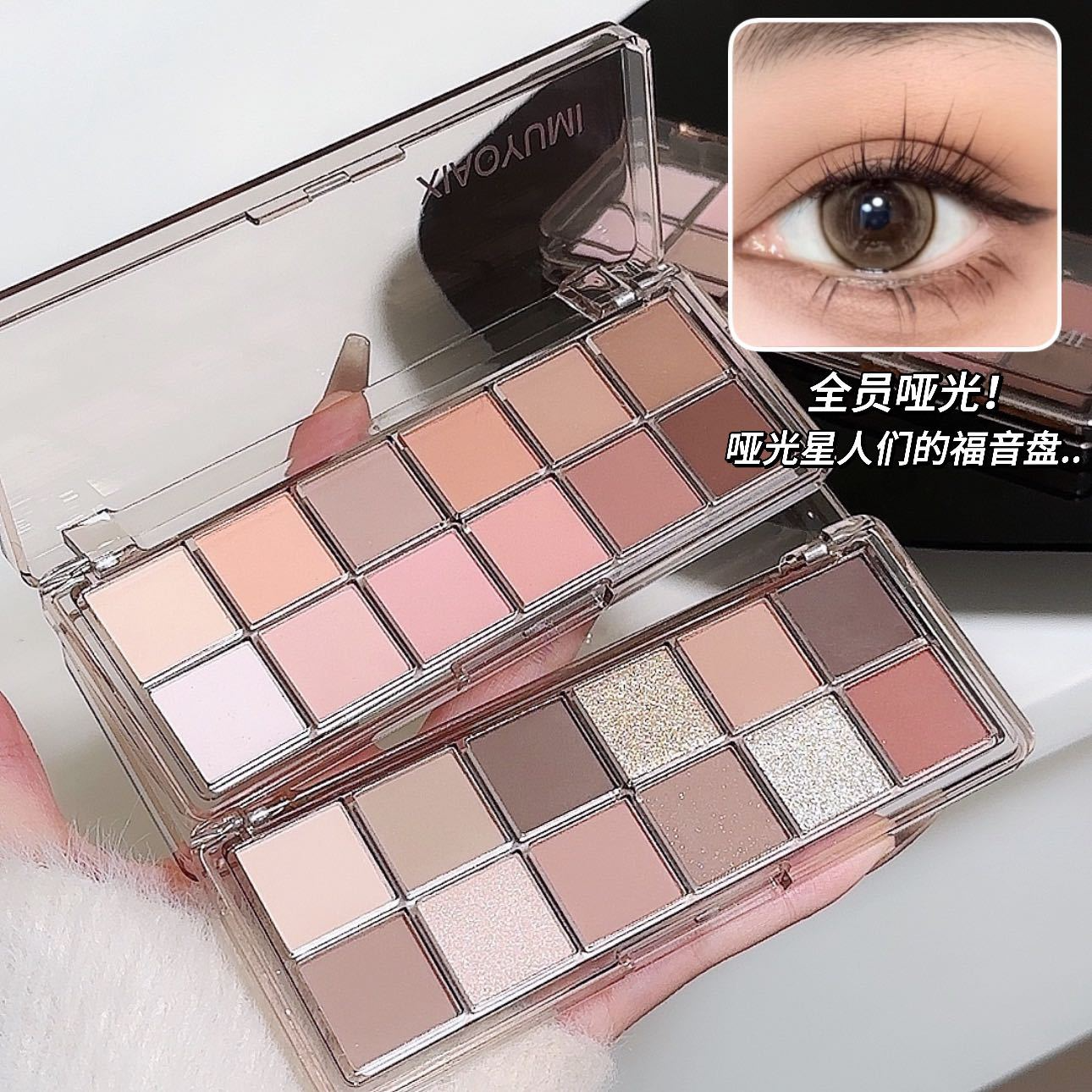 蜜芙美妝 12色眼影盤 灰粉色眼影 低飽和度 灰粉調眼影 珠光啞光 情緒框架眼影 小煙燻眼影盤 高光 腮紅 打亮