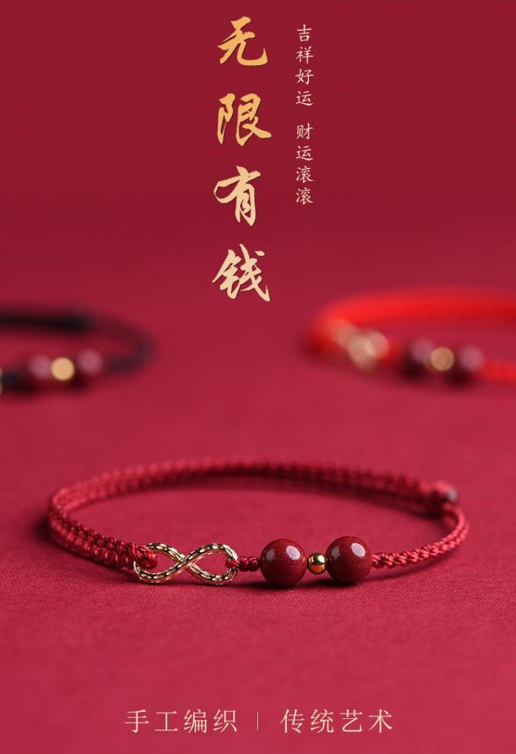無限有錢 無限手鍊 硃砂手鍊 紅繩手鍊 招好運 招財手鍊 幸運手鍊 本命年手鍊 本命年紅繩手環 手繩