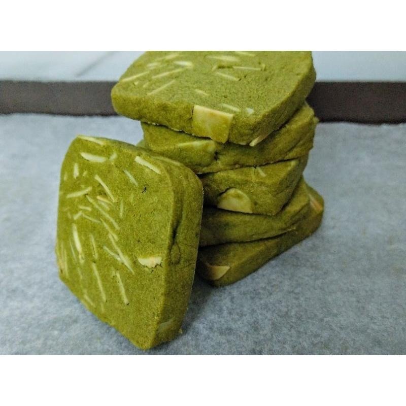 成分:法國發酵奶油、糖、蛋、麵粉、靜岡抹茶粉、美國杏仁片。