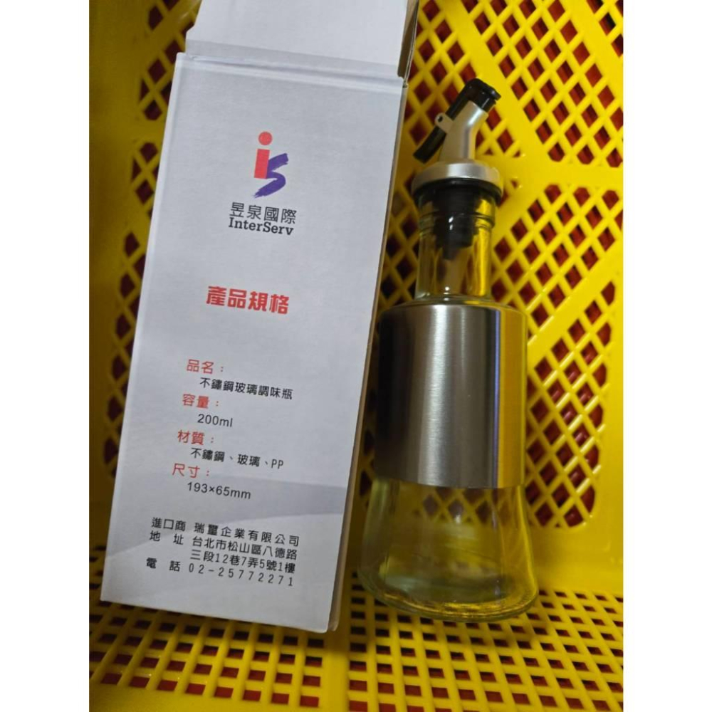 200ml玻璃調味瓶 油罐 油瓶 醬油瓶 不鏽鋼醬料瓶 料理瓶 調味瓶 醬料罐 玻璃瓶 醋瓶 油壺 調味料罐 昱泉紀念品 材質 不鏽鋼+玻璃+PP 尺寸 193x65mm