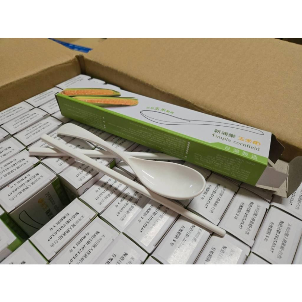 【現貨】 台灣製玉米田餐具組 PLA環保玉米筷 湯匙個人便攜組 學生 外出 餐具 顏色隨機 新浦樂