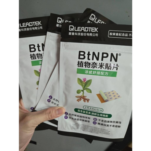 BtNPN涼感植物奈米貼片(一包3片入) 到期日2026/4/7 尺寸:9*13公分 BtnNPN植物奈米貼片(一包2片入) 效期: 2027/12/11 天然草本植物萃取 奈米滲透深層有感 不含西藥無抗藥性 親膚材質不易過敏