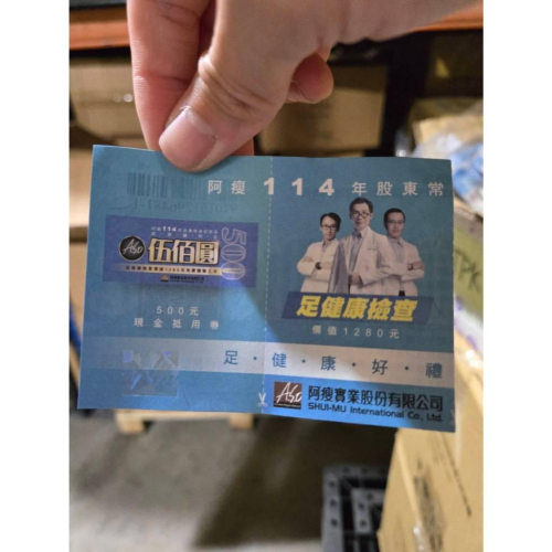 阿瘦皮鞋現金抵用券500元 足健康檢查免費體驗乙次 阿瘦股東紀念品 內容包括:足健康檢查免費體驗乙次、500元現金抵用券 114年阿瘦股東常會紀念品 有效期限:至114/12/31 使用規則: 1.隨券另贈價值1280元足健康檢查免費體驗乙次 2.限購阿瘦自有品牌鞋、包商品抵用 3.每張現金抵用券限用一筆交易,且限用於阿瘦全國門市