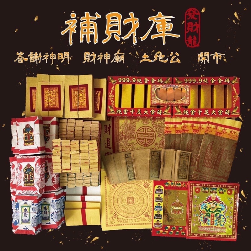 內容:(好)足百錫箔壽金5百金+(好)竹漿紙天地水庫各50萬+(好)天地水錢各50萬+(台製)大金條2盒+元寶1盒+財神寶衣2張+甲馬一只+神馬一只+財神爺一只+金錢2只+白錢2只+大壽生錢10張+貴人金文疏一份+補運金文疏一份。