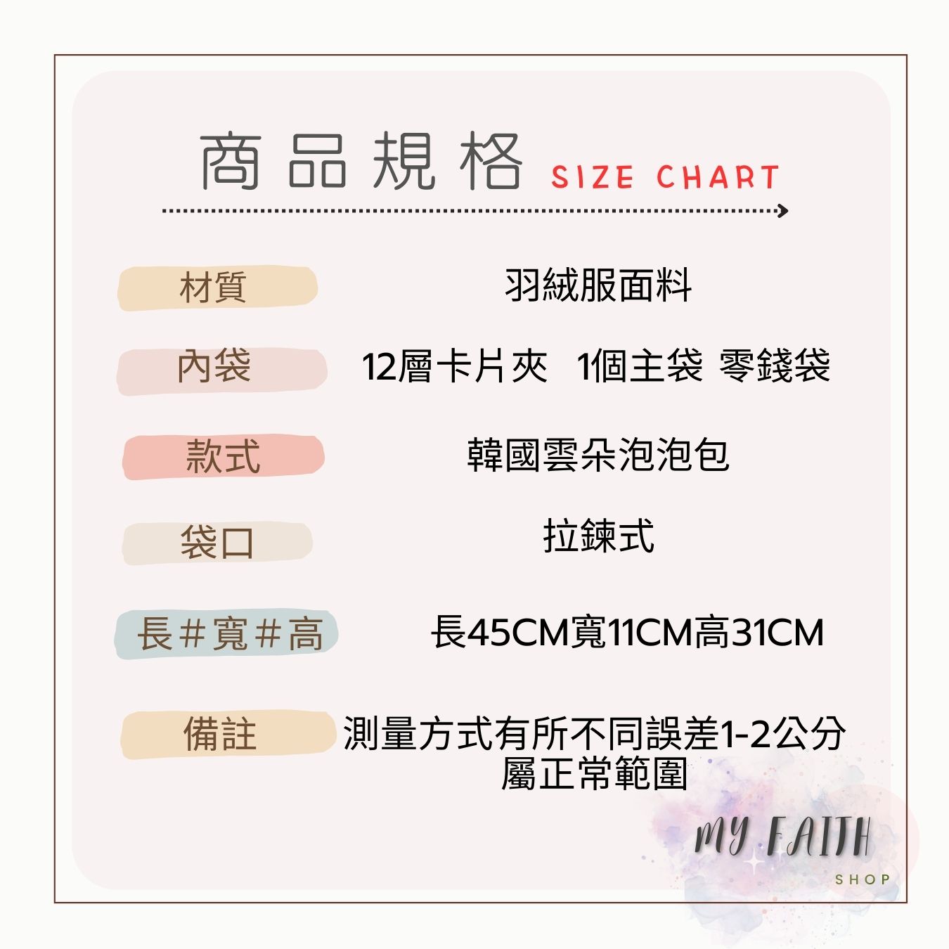 2. 手工測量,尺寸可能有1~2cm誤差,購買前請注意。