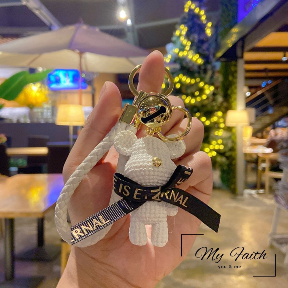 【MY FAITH】可愛蝴蝶結暴力熊吊飾鑰匙圈 裝飾包包 送禮 閨密同款 汽車鑰匙圈 手機吊飾