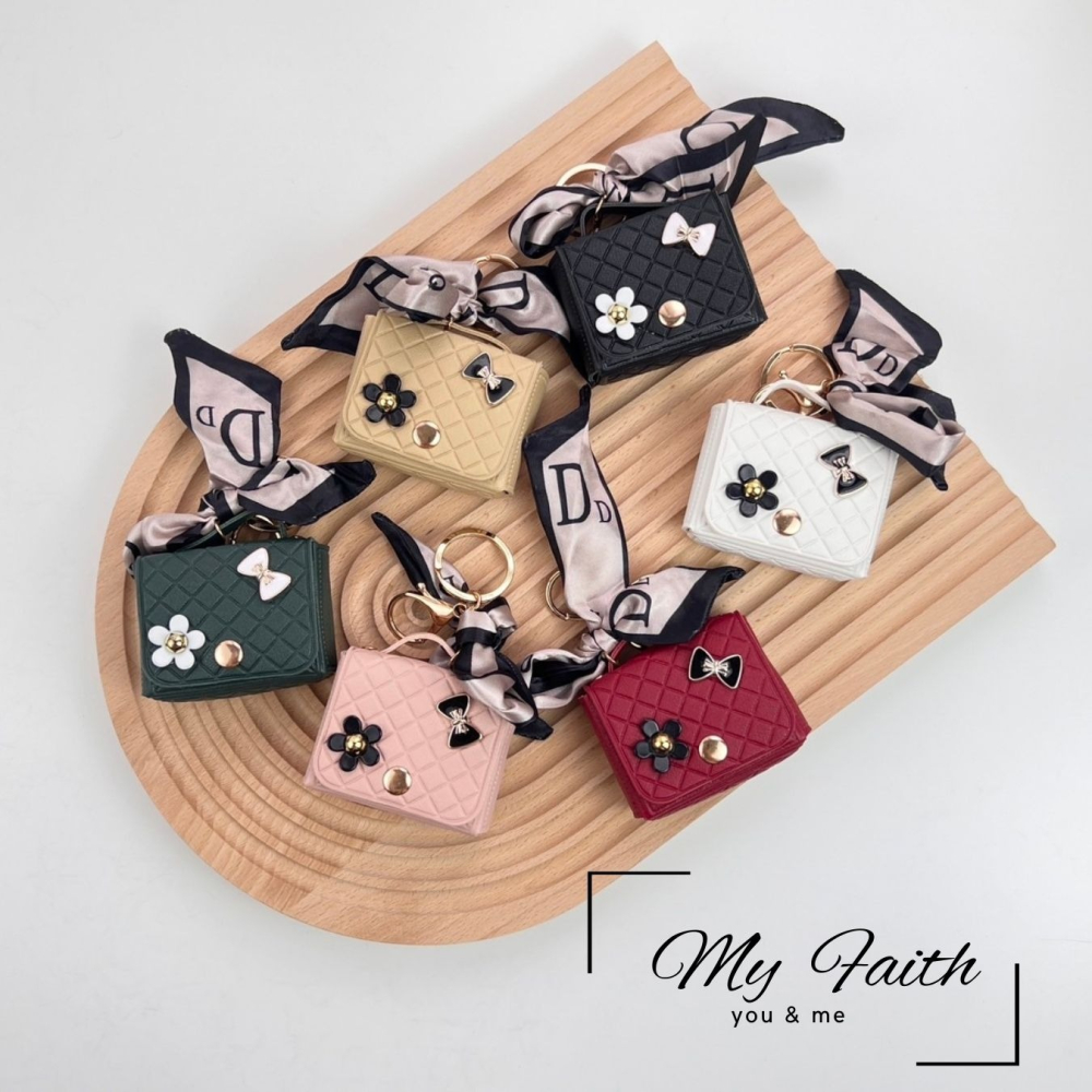 【MY FAITH】小香風耳機袋可愛吊飾鑰匙圈 裝飾包包 送禮 閨密同款 汽車鑰匙圈 零錢包 多功能 手機吊飾 耳機包