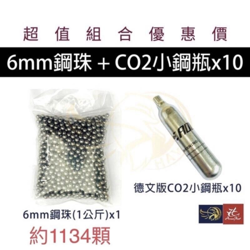 組合包:6mm無油鋼珠X1+德文版CO2x10