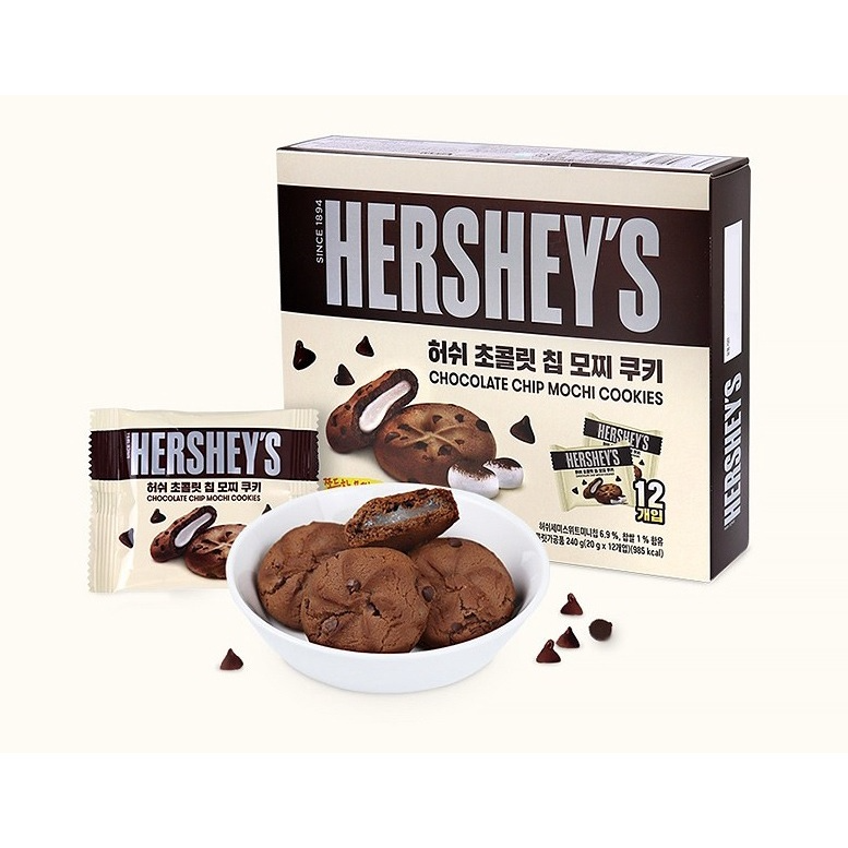 好時巧克力的軟餅乾+巧克力豆外層~ 加上韓國國產的糯米製作的QQ麻糬 口感吃起來很軟Q 偏甜點口感~但搭配咖啡茶類就很剛好~