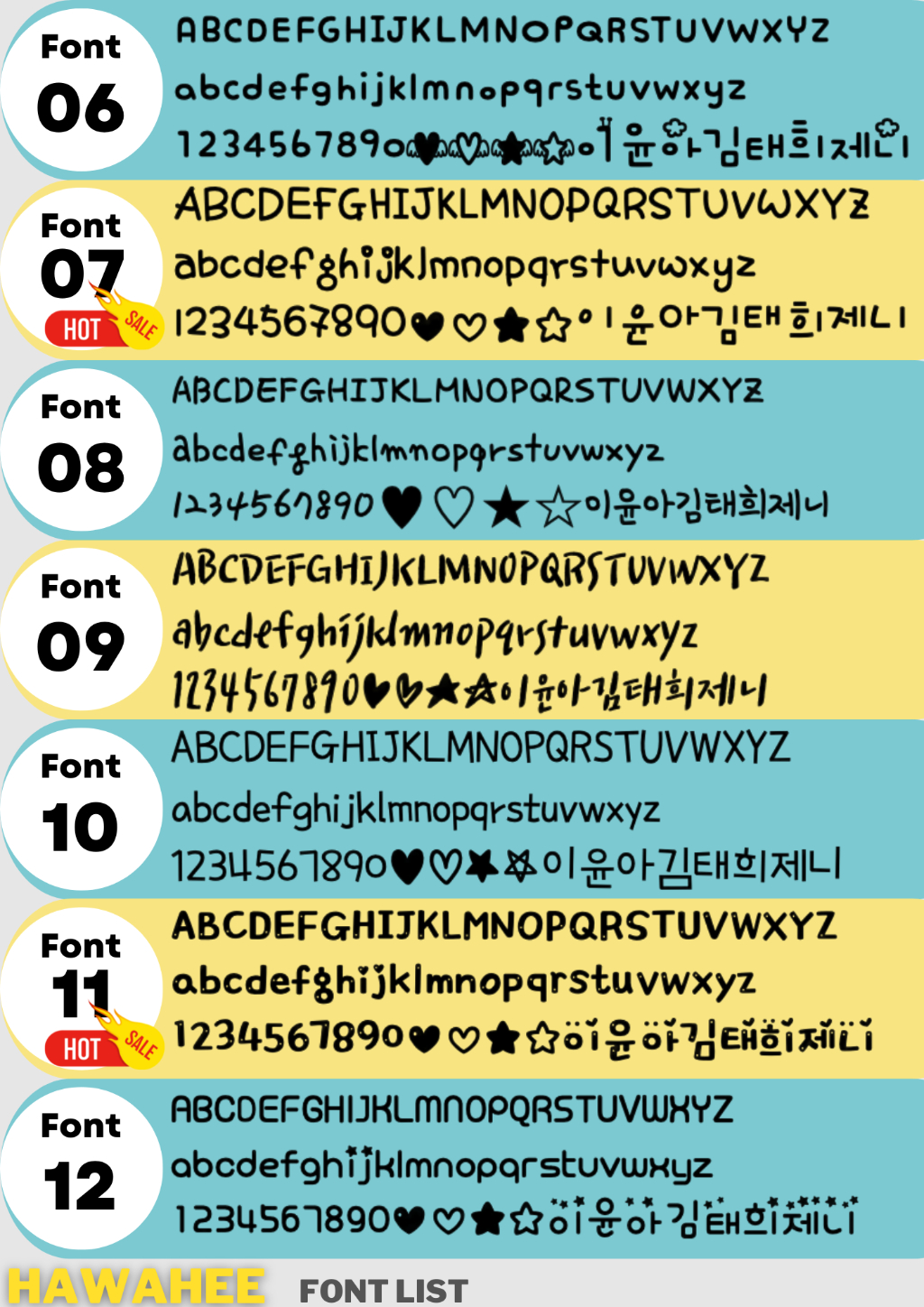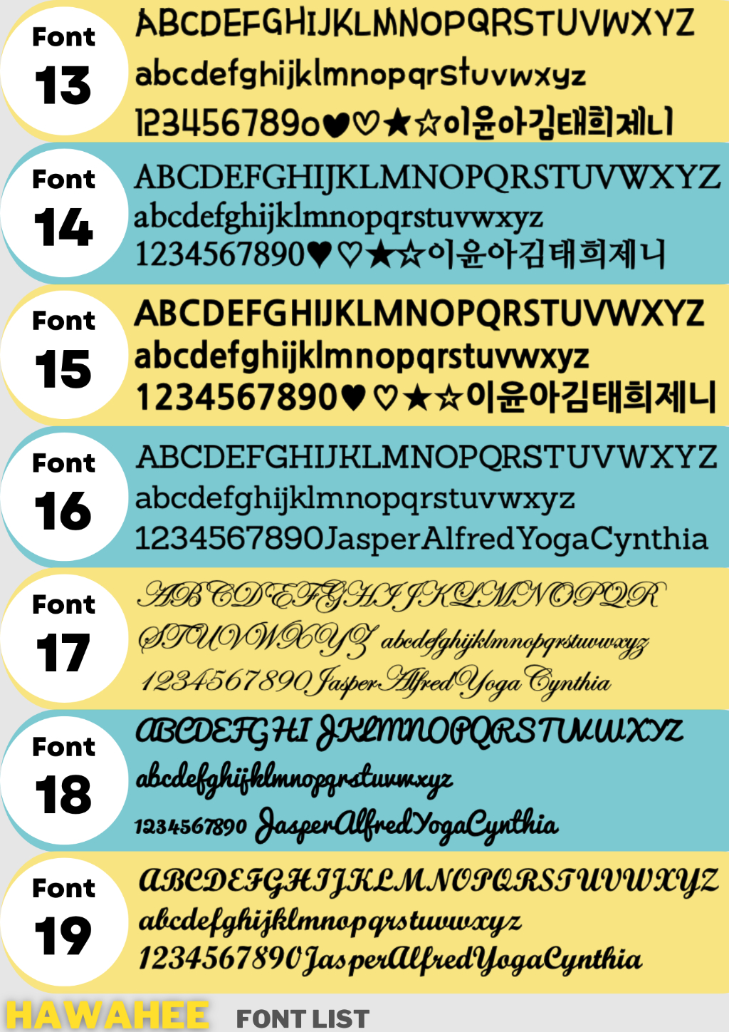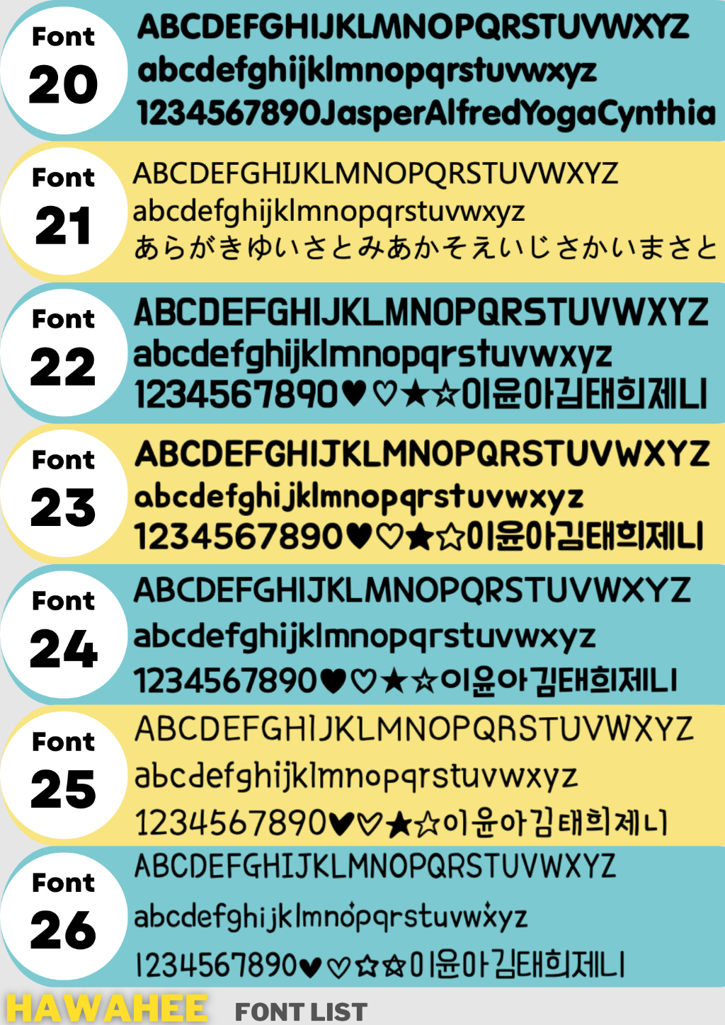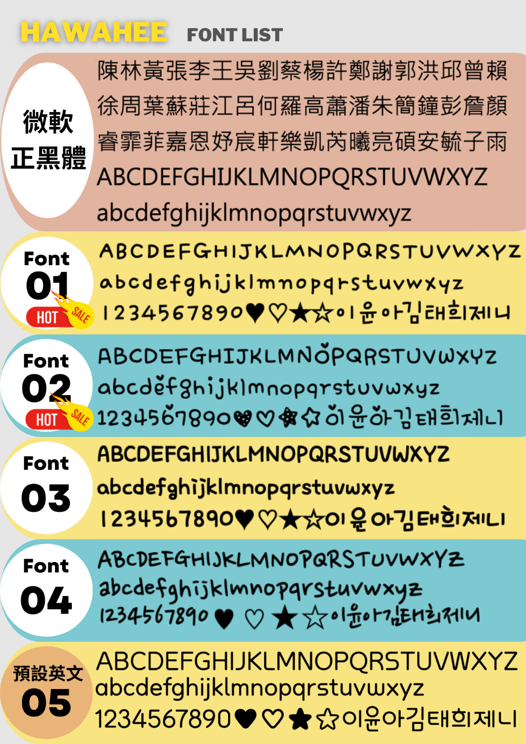 ◽️ 如要變更,請參考下方字體列表,於聊聊告知要幾號字體