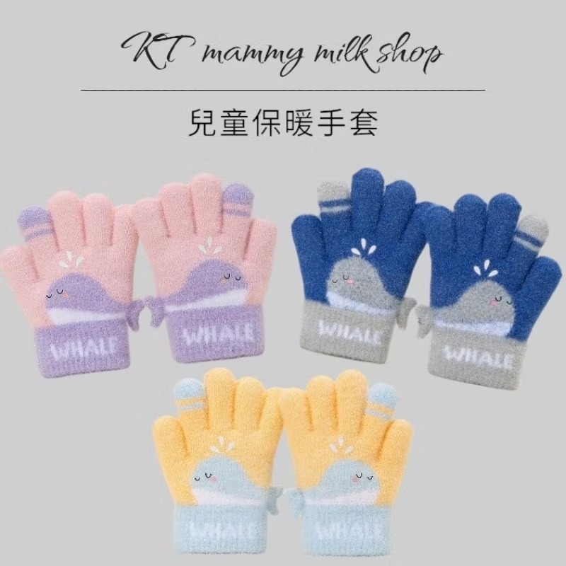 KT媽咪奶粉用品團購-現貨兒童手套,男童五指針織手套,秋冬保暖手套,男童星星圖案手套,女童五指手套,可愛鯨魚手套
