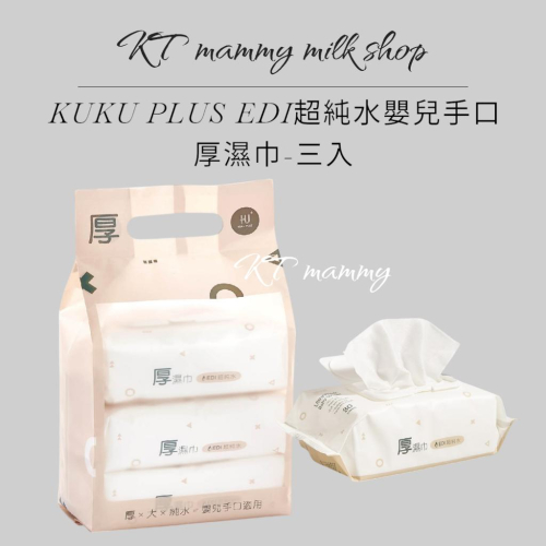 KT媽咪奶粉用品團購-KUKU PLUS EDI超純水嬰兒手口厚濕巾-三入,嬰幼兒EDI濕紙巾,寶寶濕紙巾,手口濕紙巾