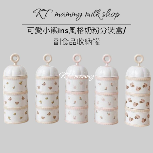 KT媽咪奶粉用品團購-可愛ins風小熊奶粉盒,外出奶粉分裝盒,寶寶副食品收納罐,可愛兔兔奶粉分裝罐,鄉村風鬱金香奶粉盒