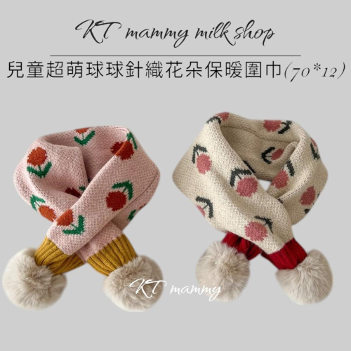 KT媽咪奶粉用品團購-台灣現貨,寶寶保暖圍巾,超萌球球拼色交叉圍巾,冬天保暖脖圍,兒童針織花朵交叉圍巾,寒流必備圍巾