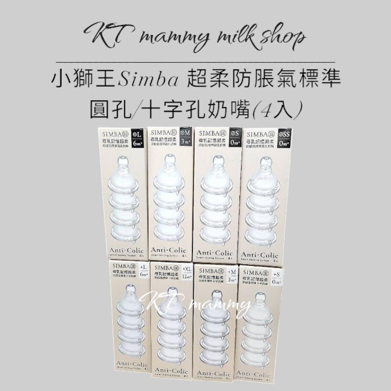 KT媽咪奶粉用品團購-小獅王辛巴超柔防脹氣標準奶嘴(4入),Simba標準口徑奶嘴,奶瓶替換奶嘴