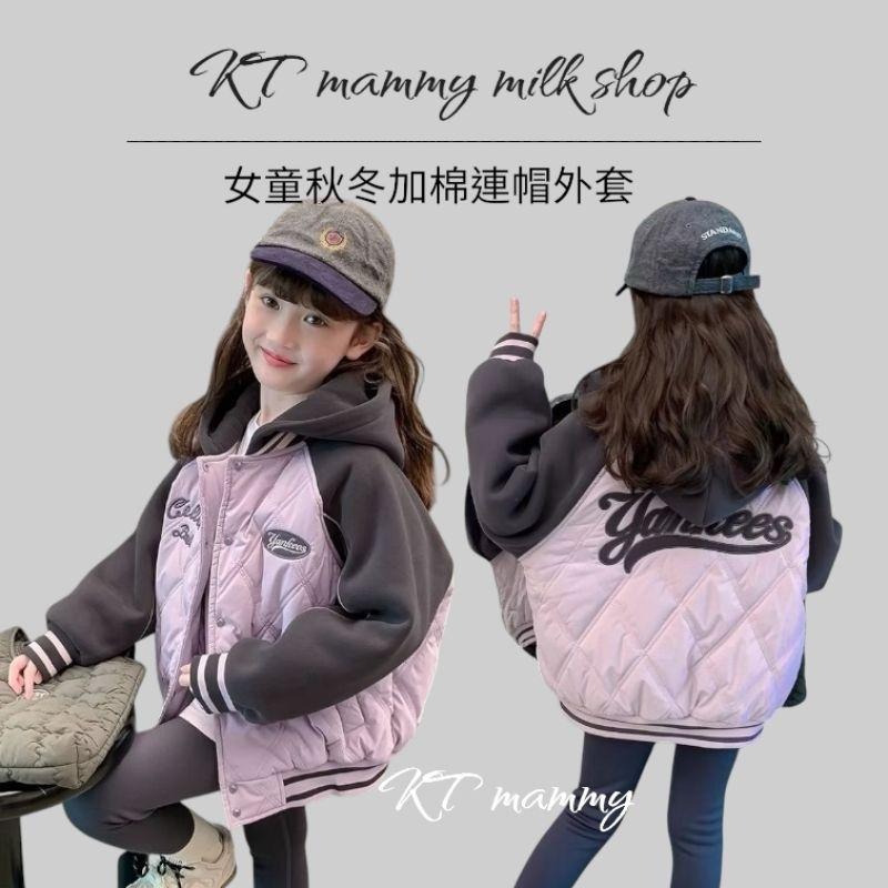 KT媽咪奶粉用品團購-秋冬款連帽外套,女童加棉連帽外套,女大童拼色連帽外套,百搭時尚外套,粉灰拼色外套,台灣現貨