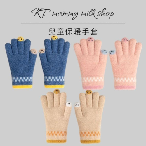 KT媽咪奶粉用品團購-現貨兒童手套,兒童笑臉五指針織手套,秋冬保暖手套,男童笑臉手套,女童五指手套,大童手套