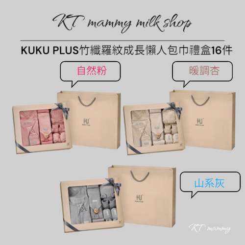 KT媽咪奶粉用品團購-KUKU PLUS竹纖羅紋成長懶人包巾禮盒16件,新生兒送禮首選,KUKU成長包巾禮盒圍兜手套腳套