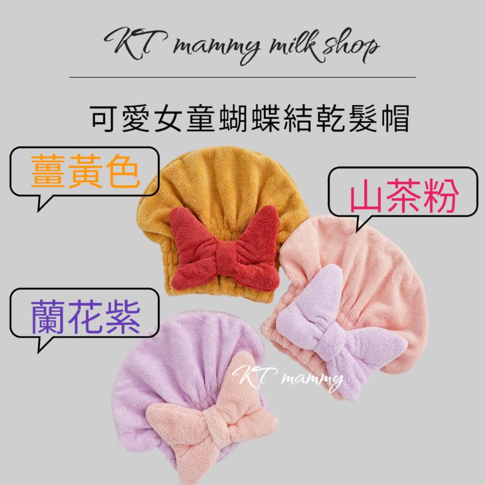 KT媽咪奶粉用品團購-現貨,兒童乾髮,女童蝴蝶結乾髮帽,吸水帽子,公主浴帽,頭髮速乾,小孩浴帽,洗髮包頭帽