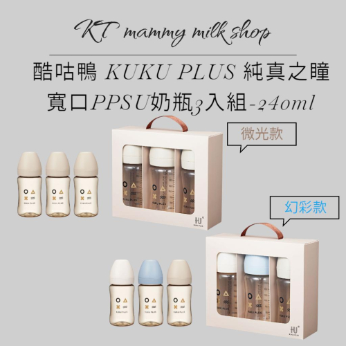 KT媽咪奶粉用品團購-新生兒禮盒,奶瓶禮盒,酷咕鴨 KUKU PLUS 純真之瞳寬口PPSU奶瓶3入組-240ml