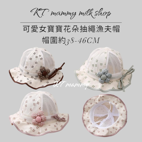 KT媽咪奶粉用品團購-春夏薄款防曬帽,女寶寶防曬漁夫帽,可愛蝴蝶結寶寶帽,女寶花朵抽繩漁夫帽,嬰兒遮陽帽,可愛花朵防曬帽