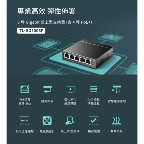 衝評價@3C特賣會@全新    TP-Link TL-SG1005P 5埠 Gigabit PoE switch交換器(65W)   實體店面 ..保證全台最便宜..@@ 請看關於我...歡迎來電.. 來的話請找...)))3C特賣會(((...保證最低價...買貴退差額.....我敢保證.... 中部最便宜的3C賣場..可到店面取貨...限量中 非賣場展示品 出價即是直購價 (直購價=起標價) ◎下標前請先詳閱關於我 並詢問(call me)有無現貨◎ "下標前請點選賣方「關於我」" 【產品特色】