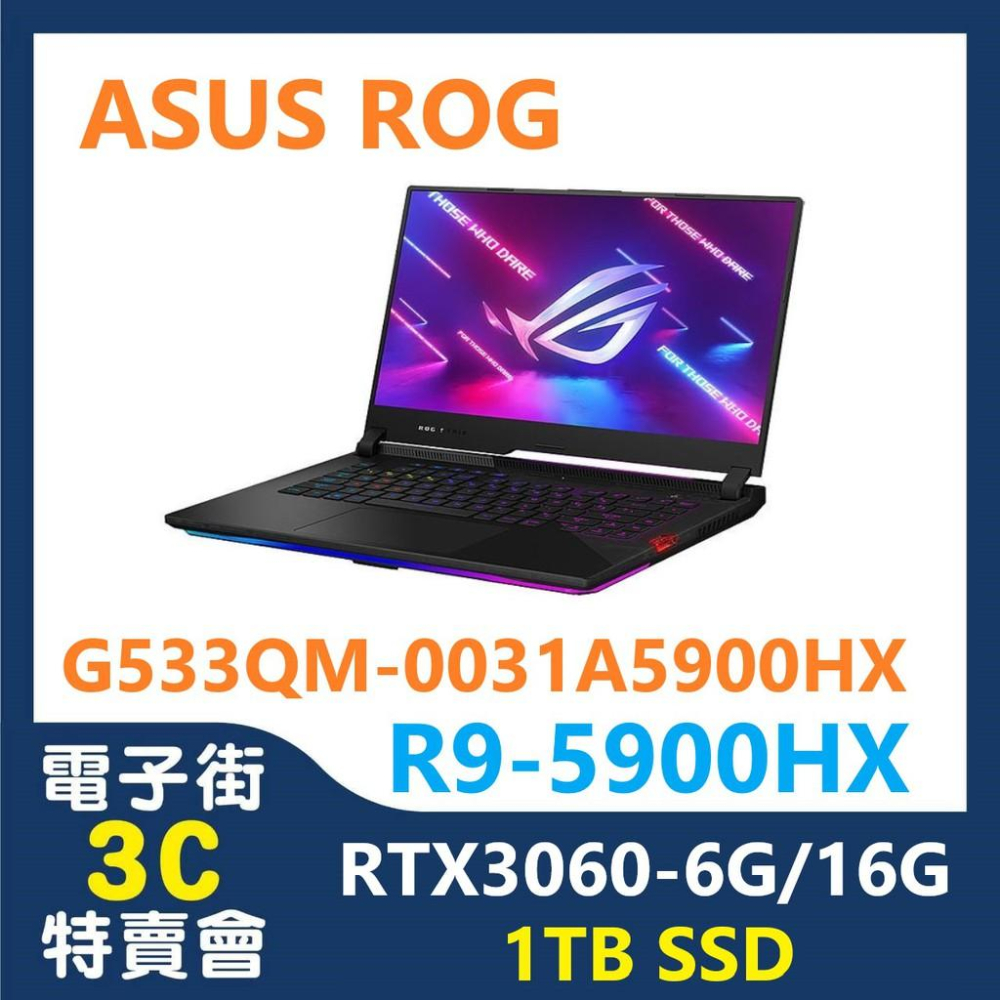 @電子街3C特賣會@全新ASUS G533QM-0031A5900HX R9-5900HX/16G/RTX3060 1T