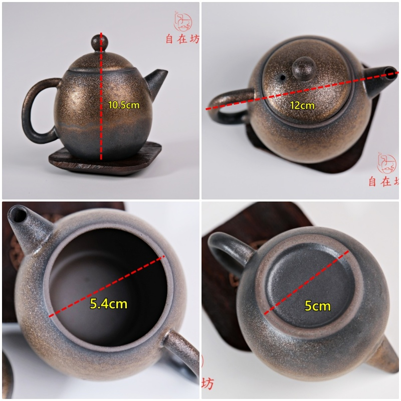 【全館滿599免運】茶壼 龍蛋壺 鎏金龍蛋壺210ml 鎏金 泡茶壺 手工粗陶【自在坊茶具】